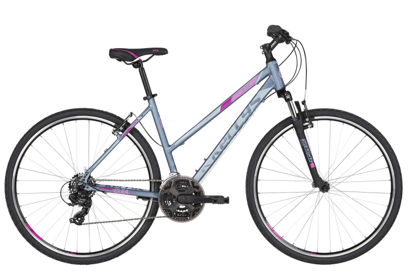 Dámské krosové kolo Kellys Clea 10 pro jízdu po zpevněných cestách nebo po silnici. Díky snížené vrchní trubce je nastupování na kolo jednodušší. Kvalitními komponenty Shimano, odpružená uzamykatelná vidlice Suntour.