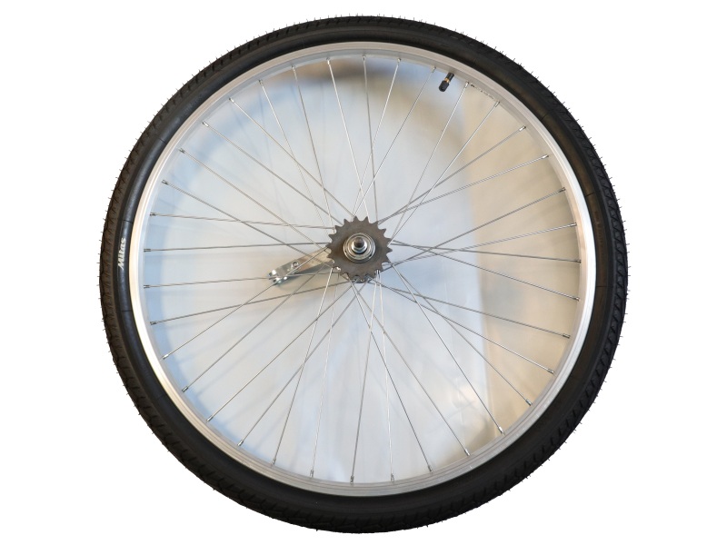- Výplet kola je tvořen jednoduchým hliníkovým ráfkem a ocelovým nábojem torpédo, který při šlápnutí dozadu brzdí.