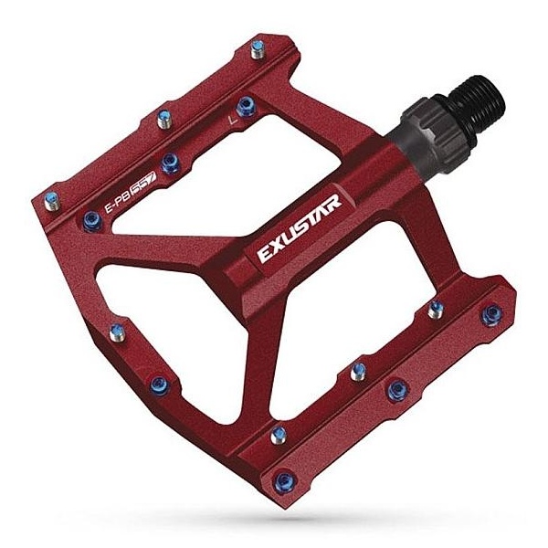 Nízkoprofilové pedály Exustar E-PB557 jsou vyrobené z eloxovaného hliníku s CrMo osou a tenkým ložiskovým systémem (LSL). Pro lepší kontakt s botou jsou pedály po obou stranách opatřené protiskluzovými vyměnitelnými piny. Pedály jsou určené pro náročé jezdce.