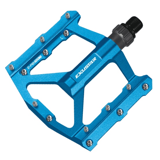 Nízkoprofilové pedály Exustar E-PB557 jsou vyrobené z eloxovaného hliníku s CrMo osou a tenkým ložiskovým systémem (LSL). Pro lepší kontakt s botou jsou pedály po obou stranách opatřené protiskluzovými vyměnitelnými piny. Pedály jsou určené pro náročé jezdce.